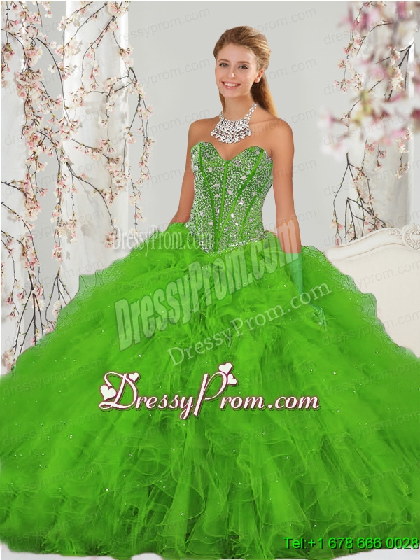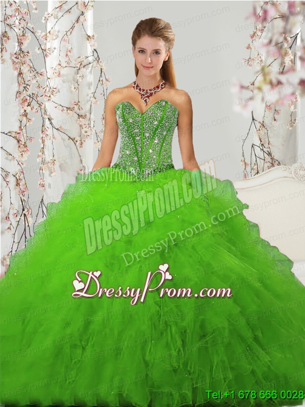 2015 Modern Beading and Ruffles Spring Green Sweet 15 Dresses