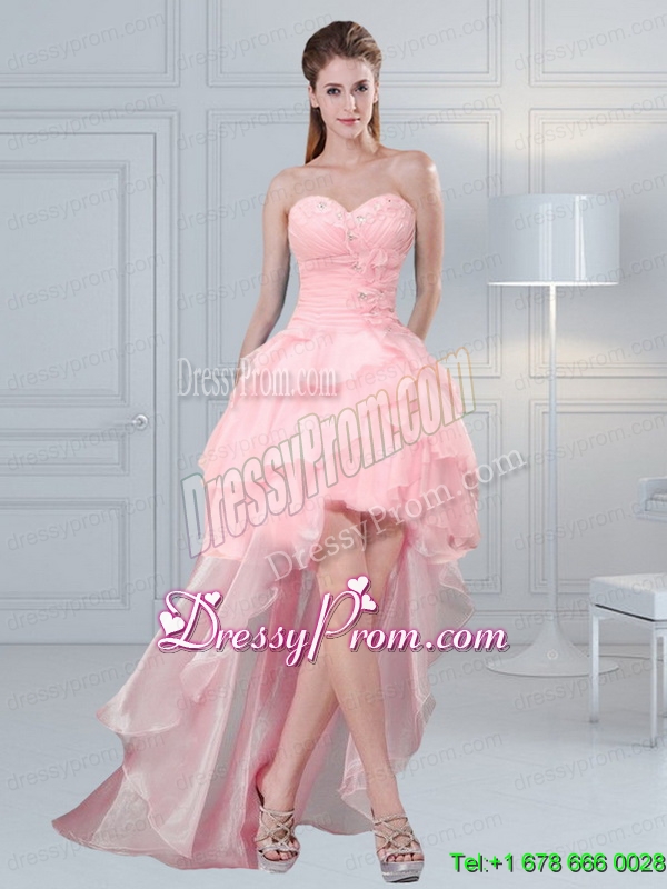 Neckline : SweetheartShown Color : Baby PinkSilhouette : Ball GownsSleeve Length : sleevelessHemline : high lowBack Detail : Lace upFabric : OrganzaEmbellishment : Beading,Ruffled LayersOccasion : Prom,Party,Cocktail,Homecoming,GraduationSeason : Spring,Summer,Fall