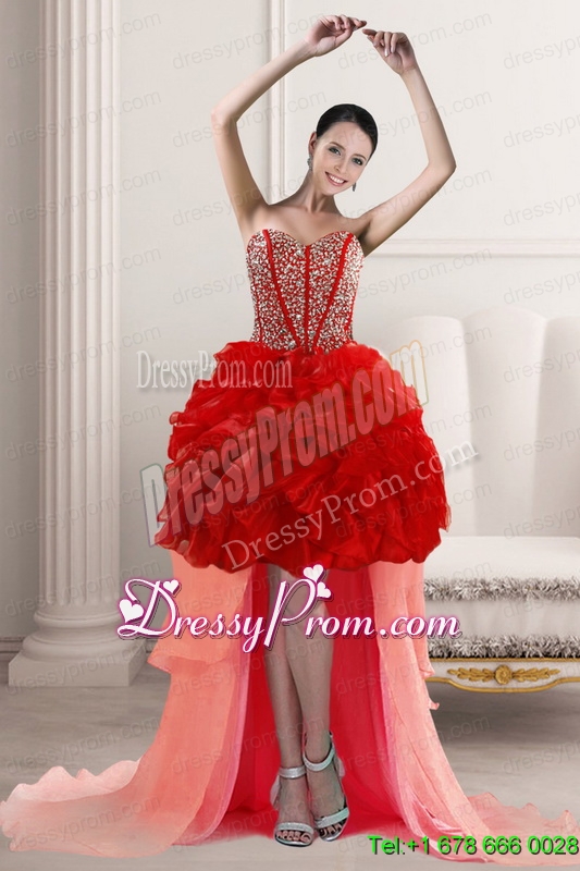 2015 Beautiful Cheap High Low Prom Dresses with Beading and Ruffles