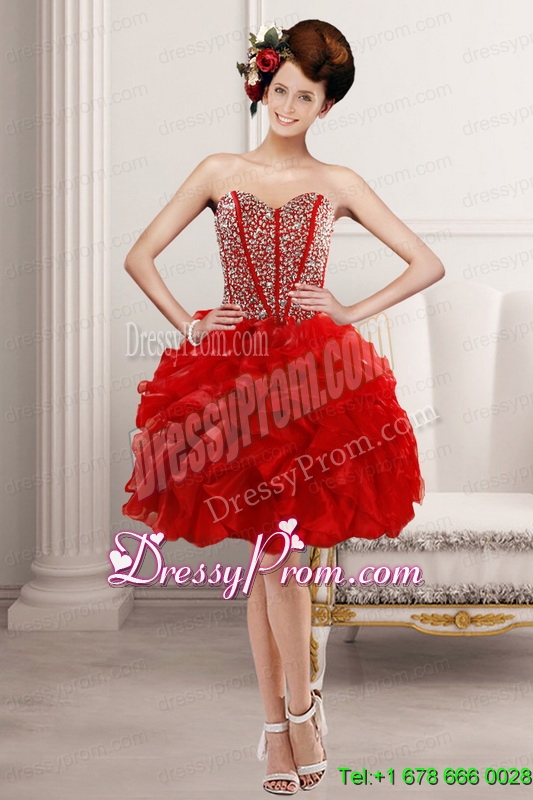 Neckline : Sweetheart Shown Color : Red Silhouette : Short Sleeve Length : sleeveless Hemline : high low Back Detail : Lace up Fabric : Organza Embellishment : Beading,Ruffles Occasion : Prom,Party,Cocktail,Homecoming,Graduation Season : Spring,Summer,Fall