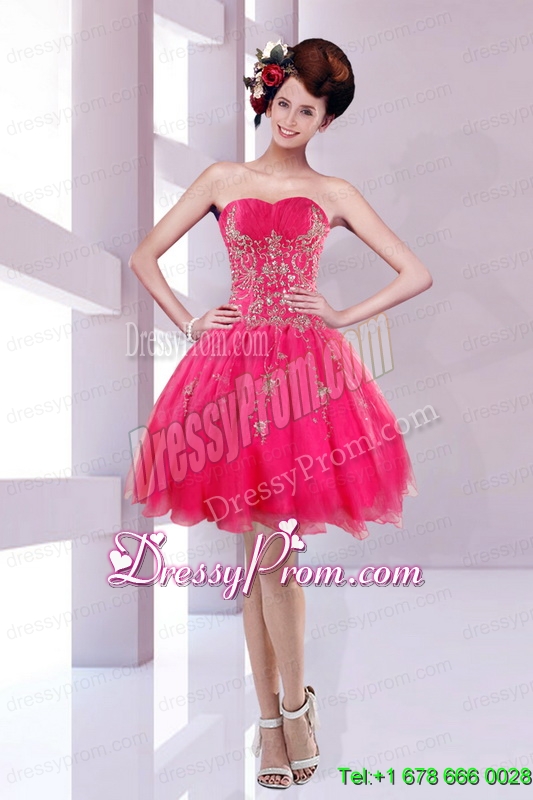 Neckline : SweetheartShown Color : Hot PinkSleeve Length : sleevelessHemline : mini lengthBack Detail : Lace upFabric : OrganzaEmbellishment : EmbroideryOccasion : Prom,Party,Cocktail,Homecoming,GraduationSeason : Spring,Summer,Fall