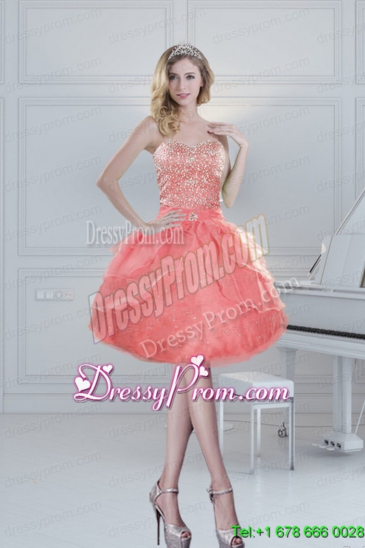 Neckline : SweetheartShown Color : Watermelon RedSilhouette : Ball GownsSleeve Length : sleevelessHemline : mini lengthBack Detail : Lace upFabric : OrganzaEmbellishment : BeadingOccasion : Prom,Party,Cocktail,Homecoming,GraduationSeason : Spring,Summer,Fall