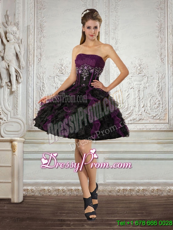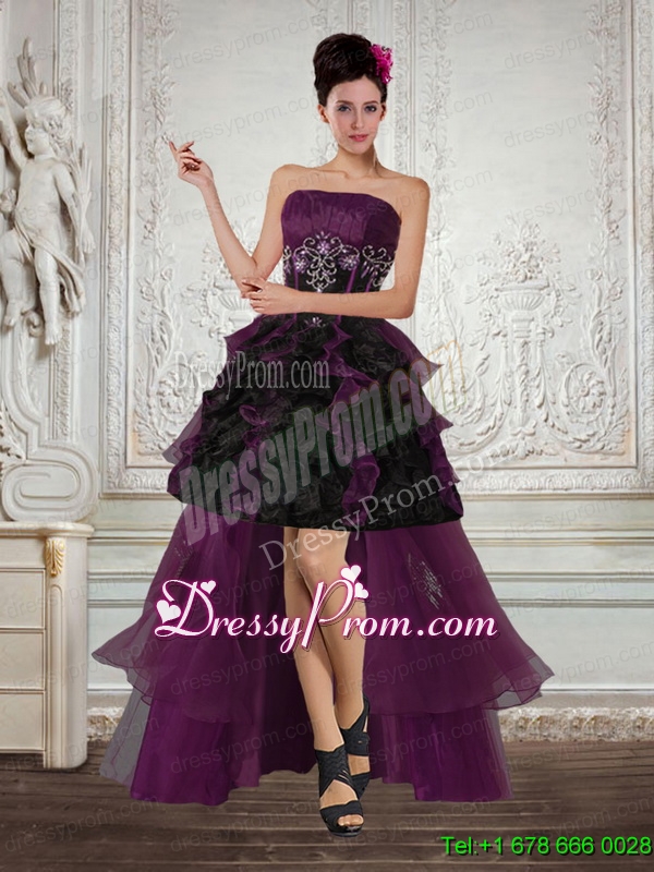 Neckline : StraplessShown Color : Multi-colorSilhouette : ShortSleeve Length : sleevelessHemline : high lowBack Detail : Lace upFabric : OrganzaEmbellishment : Embroidery,RufflesOccasion : Prom,Party,Cocktail,Homecoming,GraduationSeason : Spring,Summer,Fall