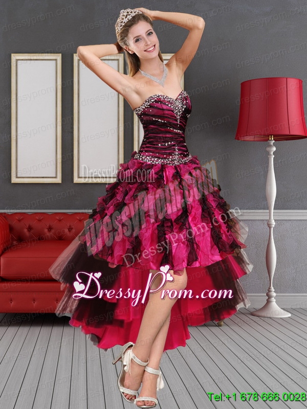 Neckline : SweetheartSleeve Length : sleevelessHemline : high lowBack Detail : Lace upFabric : OrganzaEmbellishment : Beading,RufflesOccasion : Prom,Party,Cocktail,Homecoming,GraduationSeason : Spring,Summer,Fall
