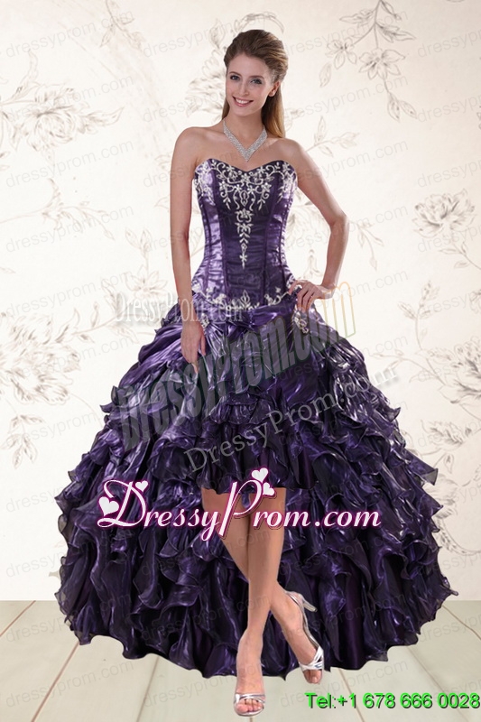 Neckline : SweetheartShown Color : PurpleSilhouette : ShortSleeve Length : sleevelessHemline : high lowBack Detail : Lace upFabric : OrganzaEmbellishment : Embroidery,RufflesOccasion : Prom,Party,Cocktail,Homecoming,GraduationSeason : Spring,Summer,Fall