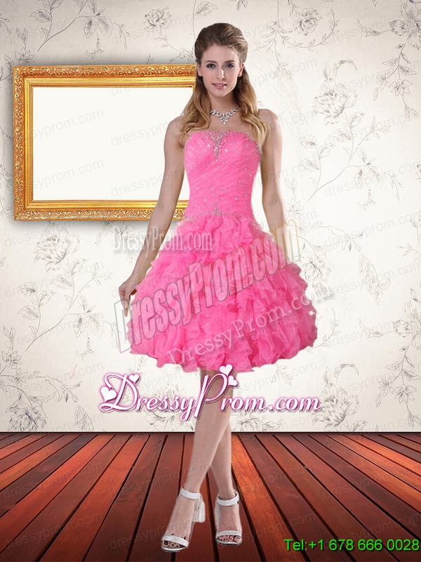 Neckline : SweetheartShown Color : Baby PinkSilhouette : Ball GownsSleeve Length : sleevelessHemline : mini lengthBack Detail : Lace upFabric : OrganzaEmbellishment : Beading,Ruffled LayersOccasion : Prom,Party,Homecoming,GraduationSeason : Spring,Summer,Fall