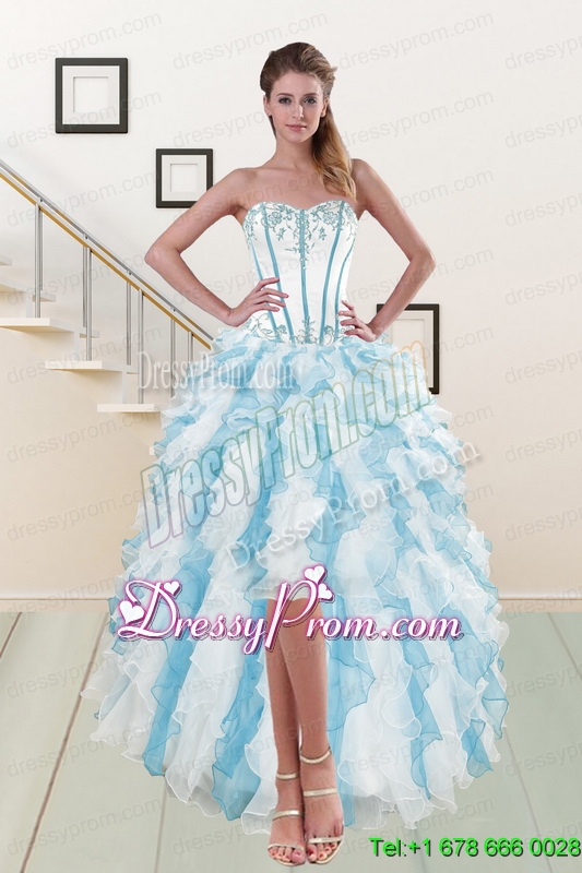 Neckline : SweetheartShown Color : Multi-colorSilhouette : ShortSleeve Length : sleevelessHemline : high lowBack Detail : Lace upFabric : OrganzaEmbellishment : Appliques,RufflesOccasion : Prom,Party,Cocktail,Homecoming,GraduationSeason : Spring,Summer,Fall