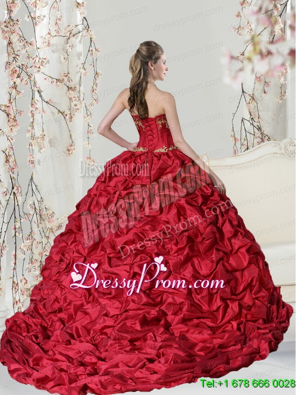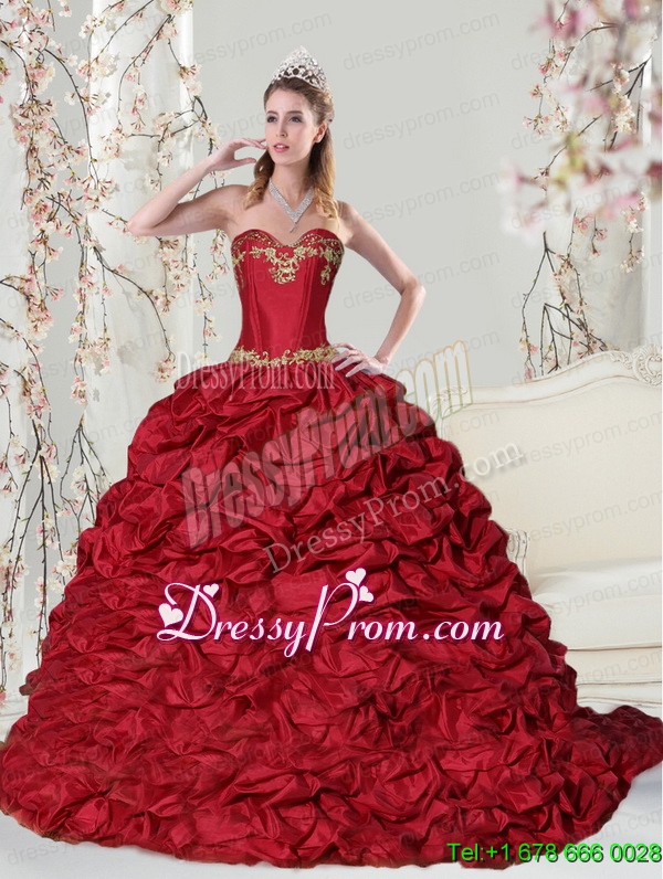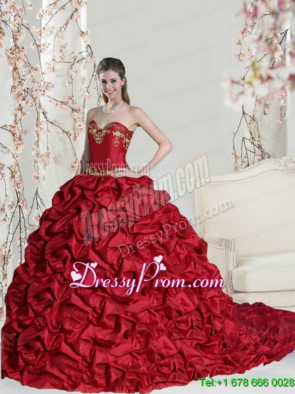 Neckline : SweetheartShown Color : RedSilhouette : Ball GownsSleeve Length : sleevelessHemline : with trainBack Detail : Lace upFabric : TaffetaEmbellishment : Embroidery,Pick UpsOccasion : Prom,Military Ball,Sweet 16,QuinceaneraSeason : Spring,Summer,Fall,Winter