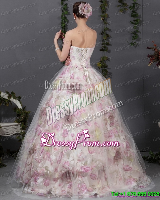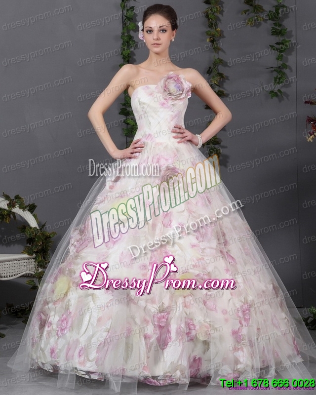 Neckline : StraplessSilhouette : A-lineSleeve Length : sleevelessHemline : floor lengthBack Detail : Lace upFabric : TulleEmbellishment : Hand Made FlowerOccasion : Military Ball,Sweet 16,QuinceaneraSeason : Spring,Summer,Fall,Winter