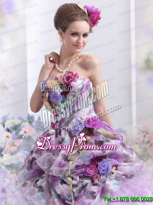 Neckline : StraplessSilhouette : Ball GownsSleeve Length : sleevelessHemline : floor lengthBack Detail : Lace upFabric : OrganzaEmbellishment : Ruffles,Hand Made FlowerOccasion : Military Ball,Sweet 16,QuinceaneraSeason : Spring,Summer,Fall,Winter