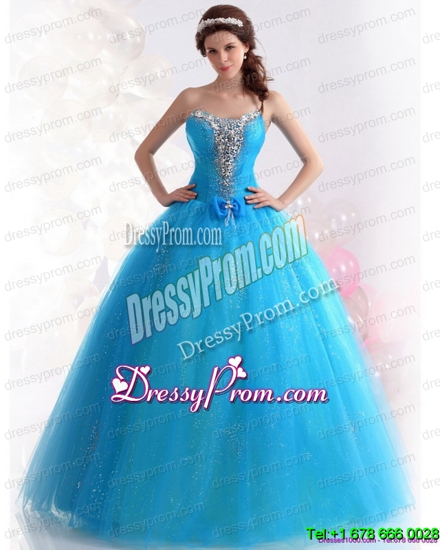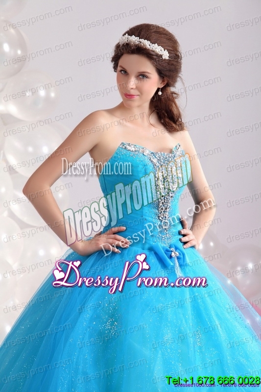 Neckline : SweetheartShown Color : BlueSilhouette : A-lineSleeve Length : sleevelessHemline : floor lengthBack Detail : Lace upFabric : TulleEmbellishment : Beading,BowknotOccasion : Military Ball,Sweet 16,QuinceaneraSeason : Spring,Summer,Fall,Winter