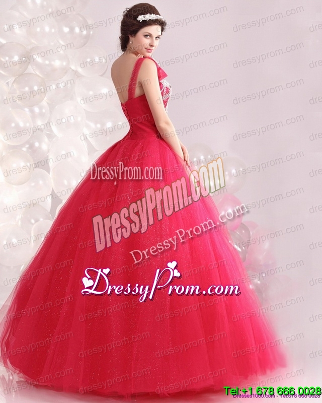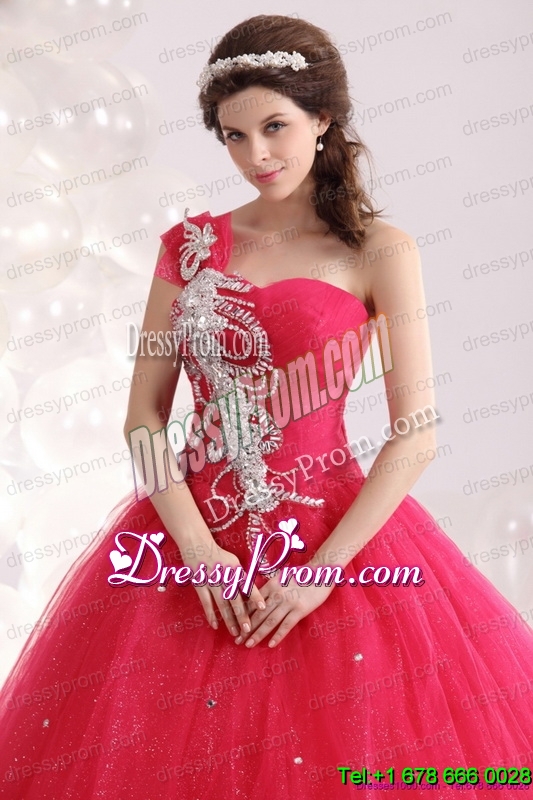 Neckline : One shoulderShown Color : RedSilhouette : A-lineSleeve Length : sleevelessHemline : floor lengthBack Detail : Lace upFabric : TulleEmbellishment : BeadingOccasion : Military Ball,Sweet 16,QuinceaneraSeason : Spring,Summer,Fall,Winter