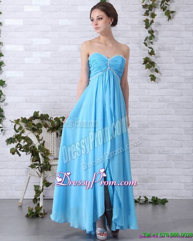Neckline : SweetheartShown Color : Baby BlueSilhouette : Column/SheathSleeve Length : sleevelessHemline : floor lengthBack Detail : ZipperFabric : ChiffonEmbellishment : Beading,RufflesOccasion : Prom,Formal Evening,Homecoming,GraduationSeason : Spring,Summer,Fall,Winter