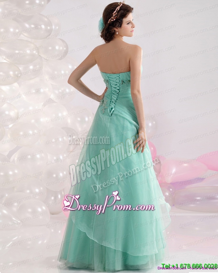 Neckline : SweetheartShown Color : Apple GreenSleeve Length : sleevelessHemline : floor lengthBack Detail : Lace upFabric : OrganzaEmbellishment : Beading,RuchingOccasion : Prom,Formal Evening,Homecoming,GraduationSeason : Spring,Summer,Fall,Winter