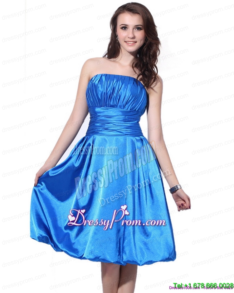 Neckline : StraplessShown Color : BlueSilhouette : ShortSleeve Length : sleevelessHemline : knee lengthBack Detail : Lace upFabric : TaffetaEmbellishment : RuchingOccasion : Prom,Party,Cocktail,Homecoming,GraduationSeason : Spring,Summer,Fall