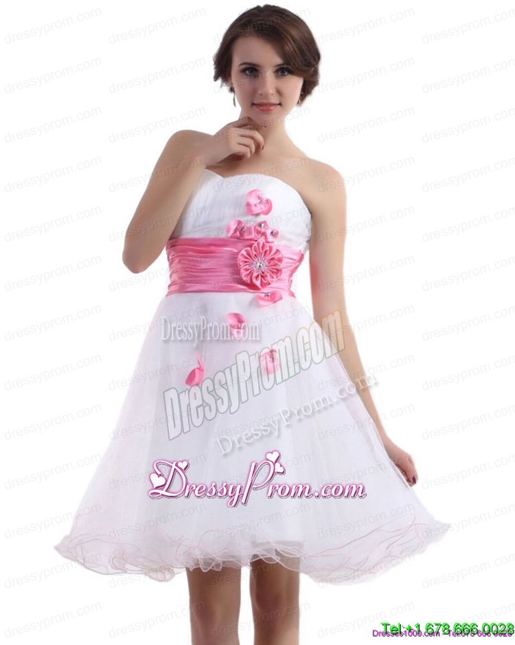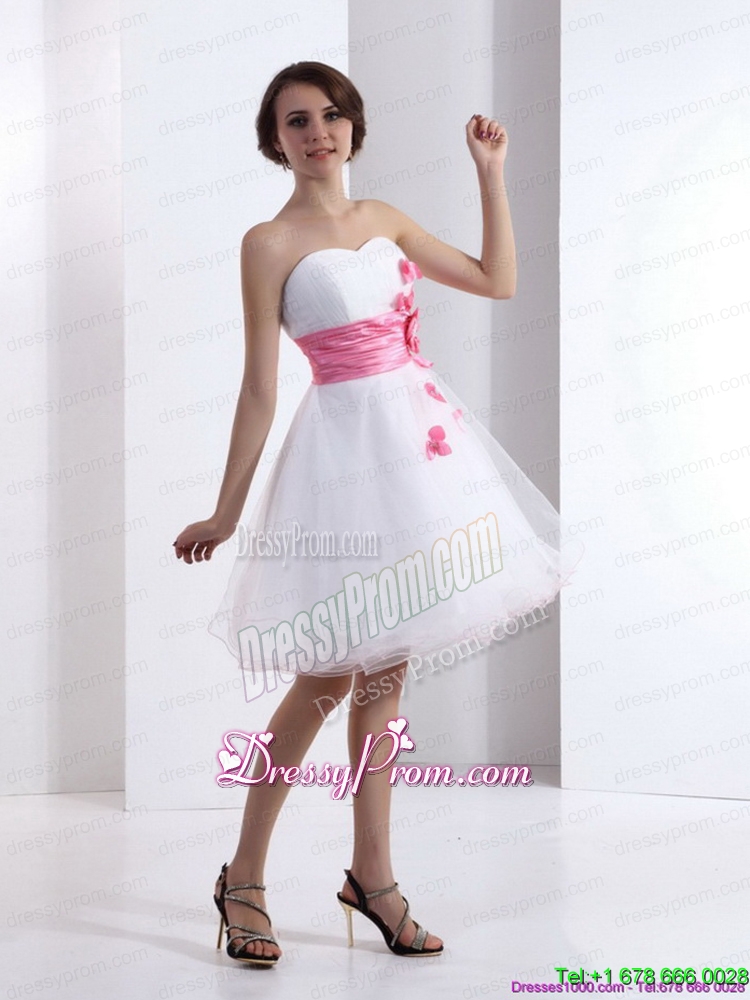Designer 2015 Romantic Sweetheart White Prom Dress with Hand Made Flowers