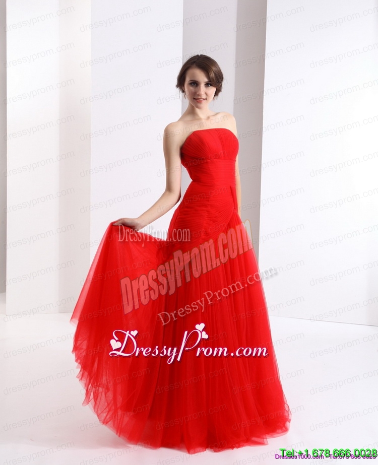 Neckline : StraplessShown Color : RedSilhouette : EmpireSleeve Length : sleevelessHemline : floor lengthBack Detail : Side zipperFabric : TulleEmbellishment : RuchingOccasion : Prom,Party,Cocktail,Homecoming,GraduationSeason : Spring,Summer,Fall,Winter