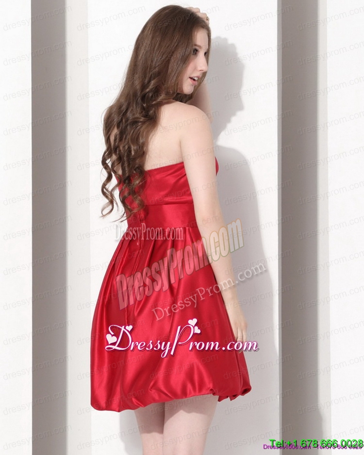 Neckline : StraplessShown Color : RedSilhouette : A-lineSleeve Length : sleevelessHemline : mini lengthBack Detail : ZipperFabric : SatinEmbellishment : BowknotOccasion : Prom,Cocktail,Homecoming,GraduationSeason : Spring,Summer,Fall