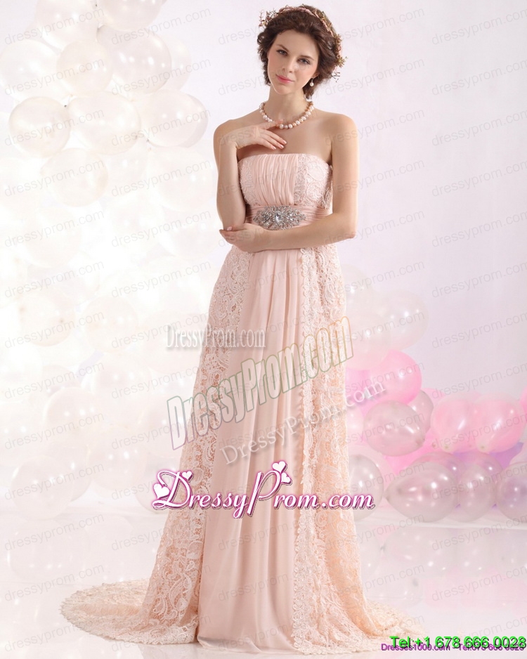 Neckline : StraplessShown Color : Hot PinkSilhouette : EmpireSleeve Length : sleevelessHemline : with trainBack Detail : Lace upFabric : ChiffonEmbellishment : Lace,SequinsOccasion : Prom,Formal Evening,Homecoming,GraduationSeason : Spring,Summer,Fall,Winter