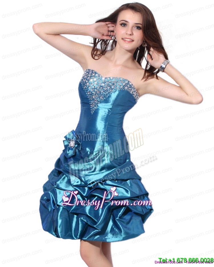 Neckline : Strapless Shown Color : Blue Sleeve Length : sleeveless Hemline : mini length Back Detail : Lace up Fabric : Taffeta Embellishment : Beading,Pick Ups,Hand Made Flower Occasion : Prom,Cocktail,Homecoming,Graduation Season : Spring,Summer,Fall