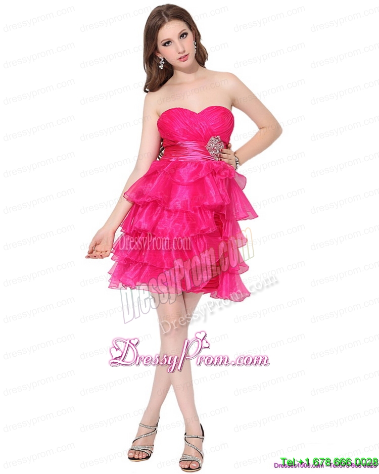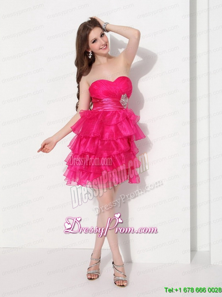Neckline : SweetheartShown Color : RedSleeve Length : sleevelessHemline : knee lengthBack Detail : ZipperFabric : OrganzaEmbellishment : Beading,Ruffled LayersOccasion : Prom,Cocktail,Homecoming,GraduationSeason : Spring,Summer,Fall