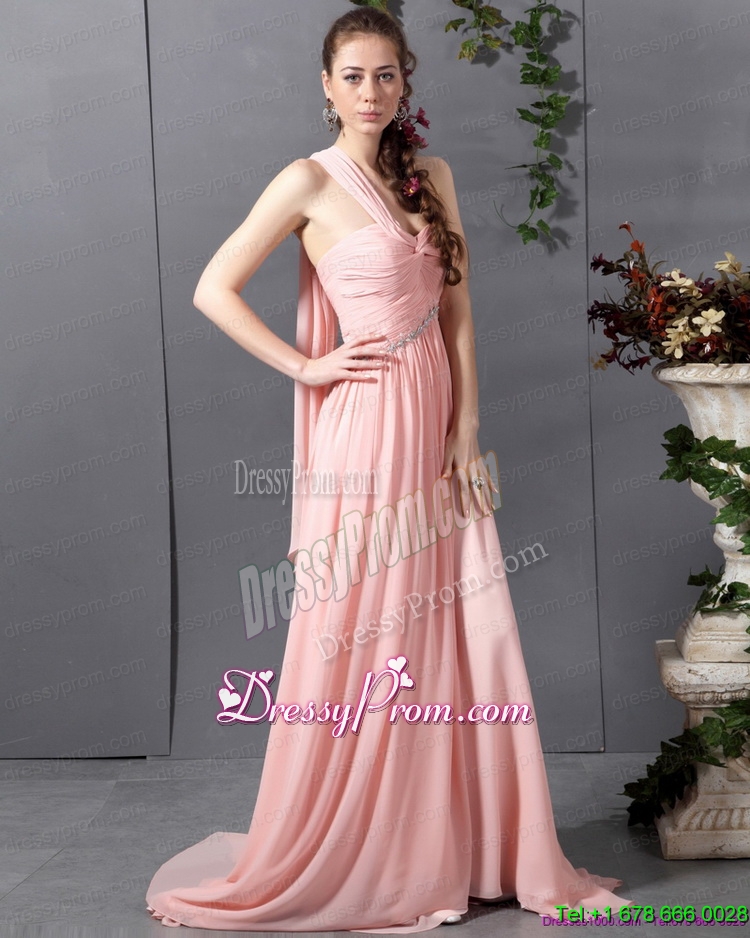 Neckline : SweetheartShown Color : Hot PinkSleeve Length : sleevelessHemline : with trainBack Detail : ZipperFabric : ChiffonEmbellishment : Beading,RuchingOccasion : Prom,Formal Evening,Homecoming,GraduationSeason : Spring,Summer,Fall,Winter