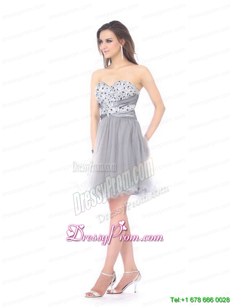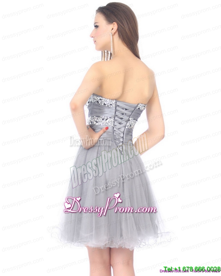 Neckline : SweetheartShown Color : GreySleeve Length : sleevelessHemline : mini lengthBack Detail : Lace upFabric : OrganzaEmbellishment : BeadingOccasion : Prom,Cocktail,Homecoming,GraduationSeason : Spring,Summer,Fall