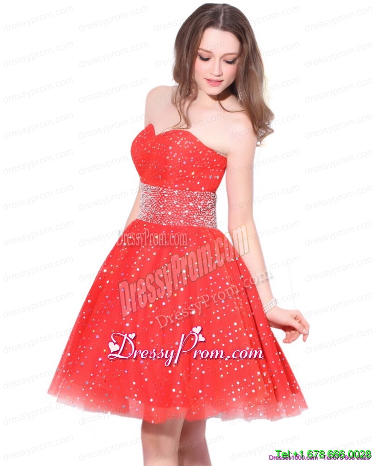 Neckline : SweetheartShown Color : RedSleeve Length : sleevelessHemline : mini lengthBack Detail : Lace upFabric : TulleEmbellishment : BeadingOccasion : Prom,Cocktail,Homecoming,GraduationSeason : Spring,Summer,Fall