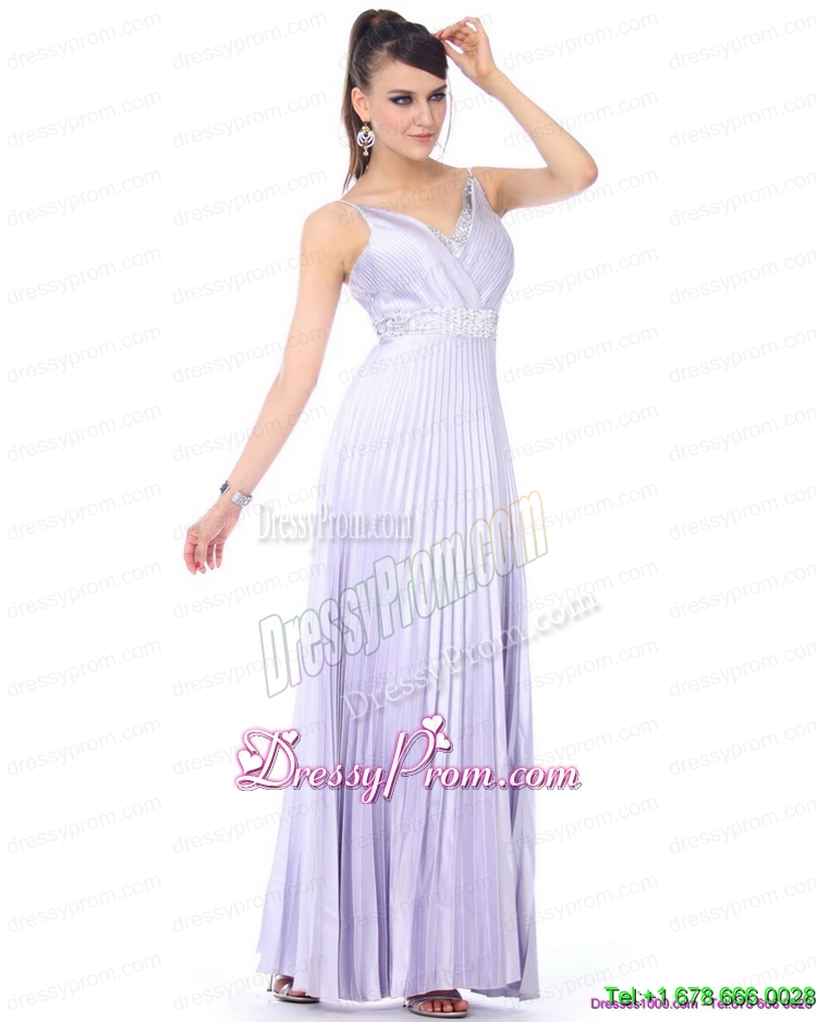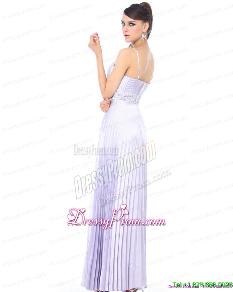Neckline : Spaghetti strapsShown Color : LilacSilhouette : EmpireSleeve Length : sleevelessHemline : ankle lengthBack Detail : ZipperFabric : TaffetaEmbellishment : Beading,PleatedOccasion : Prom,Party,Cocktail,Homecoming,GraduationSeason : Spring,Summer,Fall