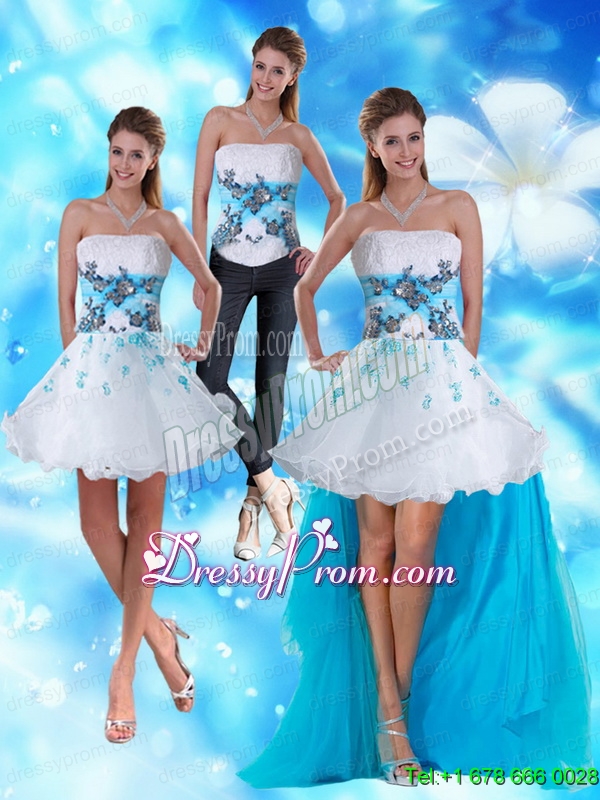 2015 Strapless White and Blue Prom Skirts with Appliques and Beading