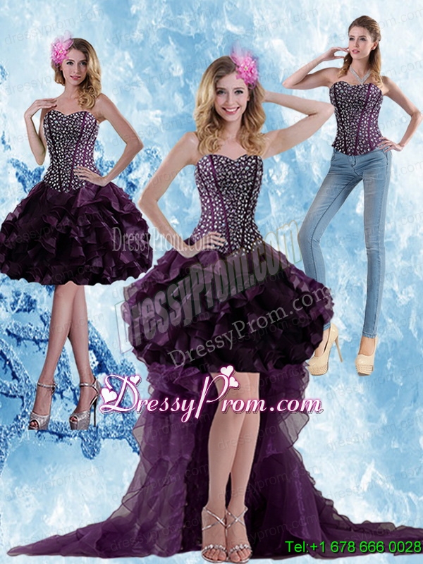 Neckline : SweetheartShown Color : Dark PurpleSilhouette : A-lineSleeve Length : sleevelessHemline : high lowBack Detail : Lace upFabric : OrganzaEmbellishment : Beading,Ruffled LayersOccasion : Prom,Party,Cocktail,Homecoming,GraduationSeason : Spring,Summer,Fall