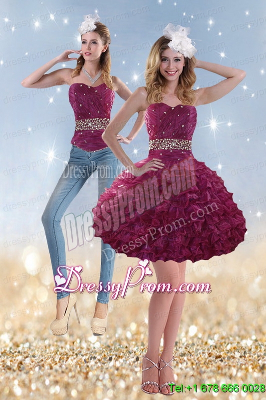 Neckline : StraplessShown Color : Wine RedSilhouette : A-lineSleeve Length : sleevelessHemline : knee lengthBack Detail : Lace upFabric : OrganzaEmbellishment : Beading,RufflesOccasion : Prom,Party,Cocktail,Homecoming,GraduationSeason : Spring,Summer,Fall