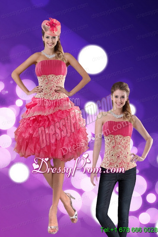 Neckline : StraplessShown Color : Coral RedSilhouette : ShortSleeve Length : sleevelessHemline : knee lengthBack Detail : Lace upFabric : OrganzaEmbellishment : Appliques,RufflesOccasion : Prom,Party,Cocktail,Homecoming,GraduationSeason : Spring,Summer,Fall