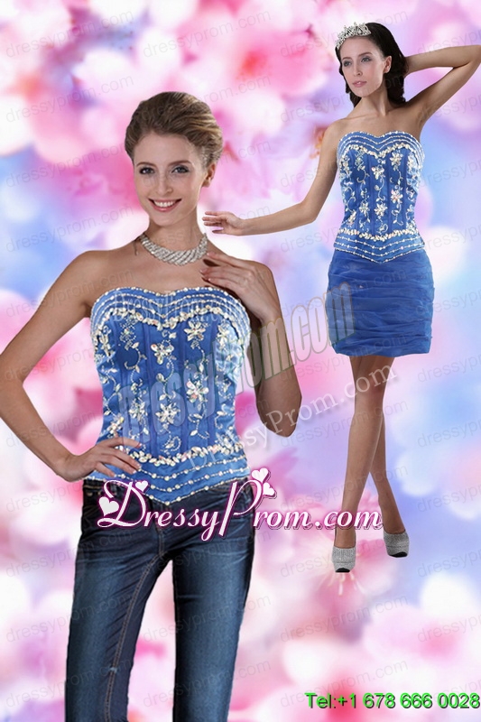 Neckline : SweetheartShown Color : BlueSilhouette : Column/SheathSleeve Length : sleevelessHemline : mini lengthBack Detail : Lace upFabric : OrganzaEmbellishment : AppliquesOccasion : Prom,Party,Cocktail,Homecoming,GraduationSeason : Spring,Summer,Fall