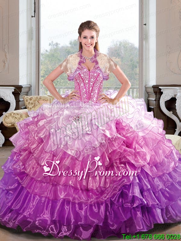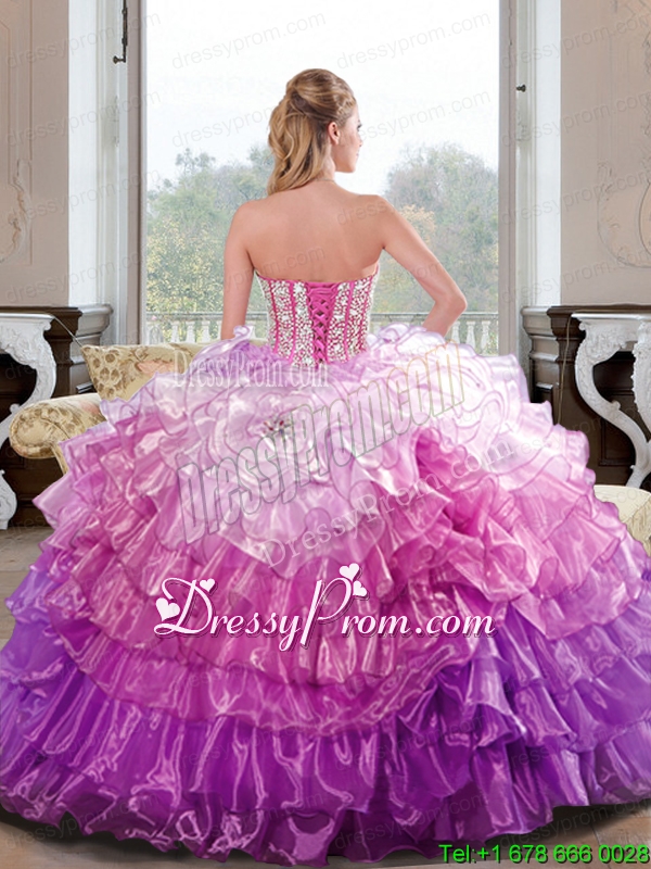 2015 Unique Beading and Ruffled Layers Multi Color Dresses for Quince