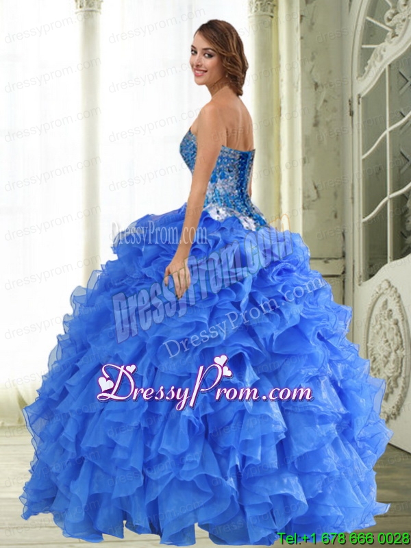 Beautiful Beading and Ruffles Sweetheart Blue Quinceanera Gown for 2015 Spring