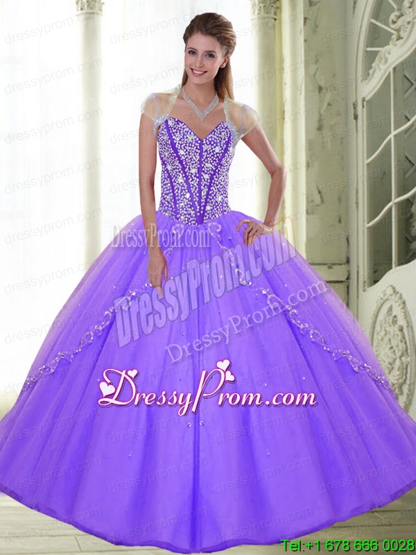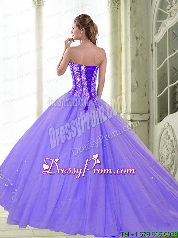 Neckline : SweetheartShown Color : LilacSilhouette : Ball GownsSleeve Length : sleevelessHemline : with trainBack Detail : Lace upFabric : TulleEmbellishment : BeadingOccasion : Military Ball,Sweet 16,QuinceaneraSeason : Spring,Summer,Fall,Winter