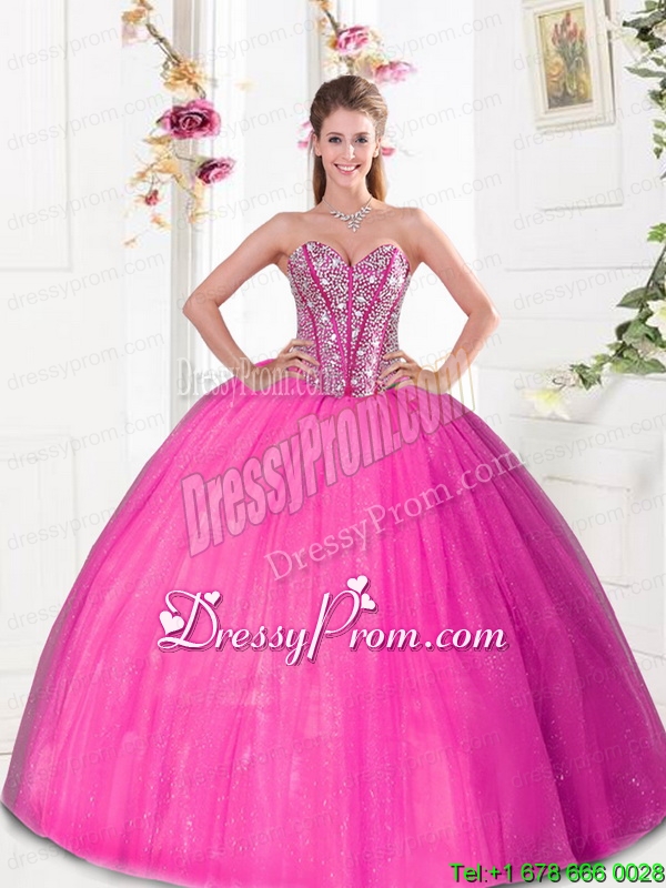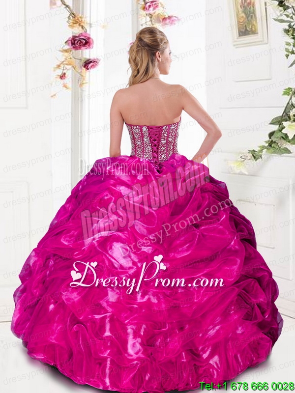 Neckline : SweetheartShown Color : Hot PinkSilhouette : Ball GownsSleeve Length : sleevelessHemline : floor lengthBack Detail : Lace upFabric : TulleEmbellishment : Beading,Pick UpsOccasion : Military Ball,Sweet 16,QuinceaneraSeason : Spring,Summer,Fall,Winter