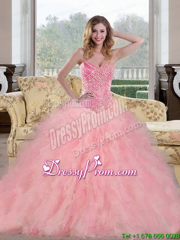 Neckline : SweetheartShown Color : Baby PinkSilhouette : Ball GownsSleeve Length : sleevelessHemline : floor lengthBack Detail : Lace upFabric : OrganzaEmbellishment : BeadingOccasion : Graduation,Military Ball,Sweet 16,QuinceaneraSeason : Spring,Summer,Fall,Winter