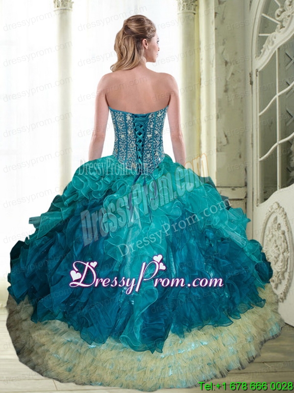 2015 Custom Made Beading and Ruffles Sweetheart Quinceanera Dresses in Multi Color