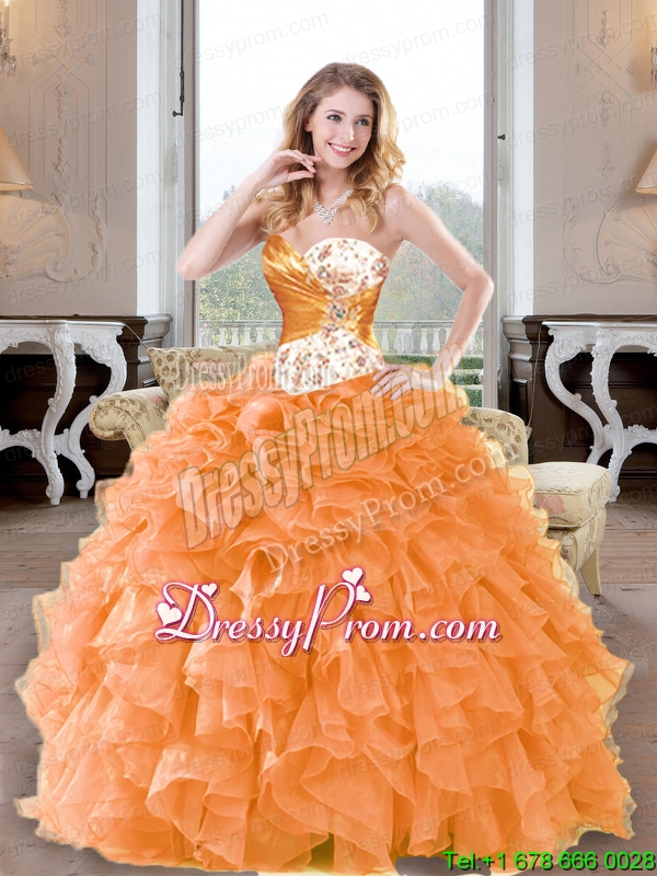 Neckline : SweetheartShown Color : Orange RedSilhouette : Ball GownsSleeve Length : sleevelessHemline : floor lengthBack Detail : Lace upFabric : OrganzaEmbellishment : Beading,RufflesOccasion : Graduation,Military Ball,Sweet 16,QuinceaneraSeason : Spring,Summer,Fall,Winter