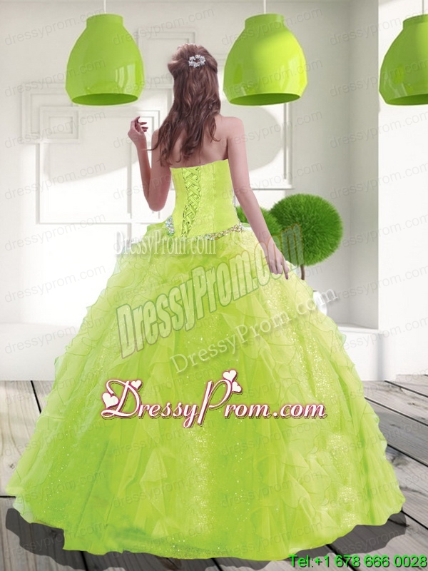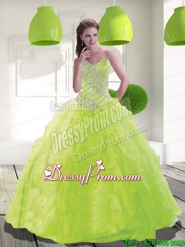 Neckline : SweetheartShown Color : Spring GreenSilhouette : Ball GownsSleeve Length : sleevelessHemline : floor lengthBack Detail : Lace upFabric : OrganzaEmbellishment : BeadingOccasion : Graduation,Military Ball,Sweet 16,QuinceaneraSeason : Spring,Summer,Fall,Winter